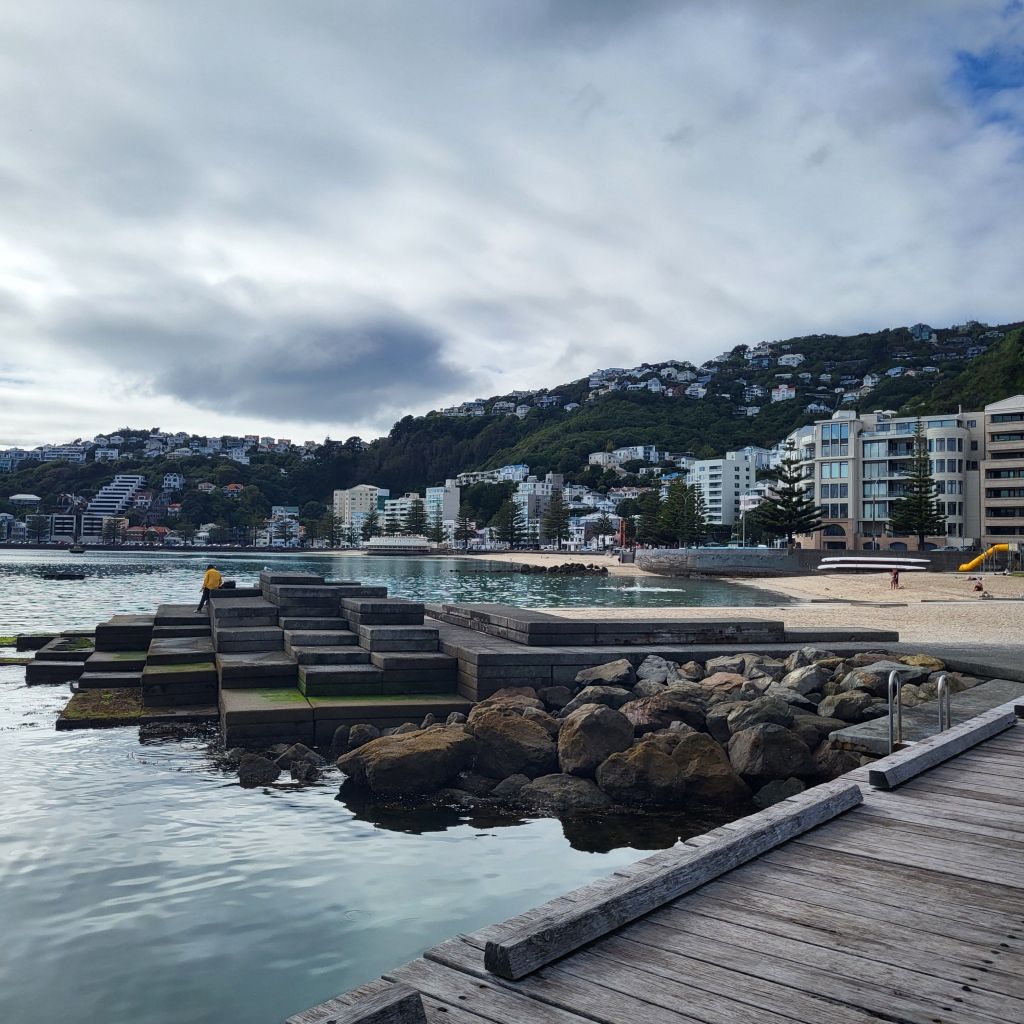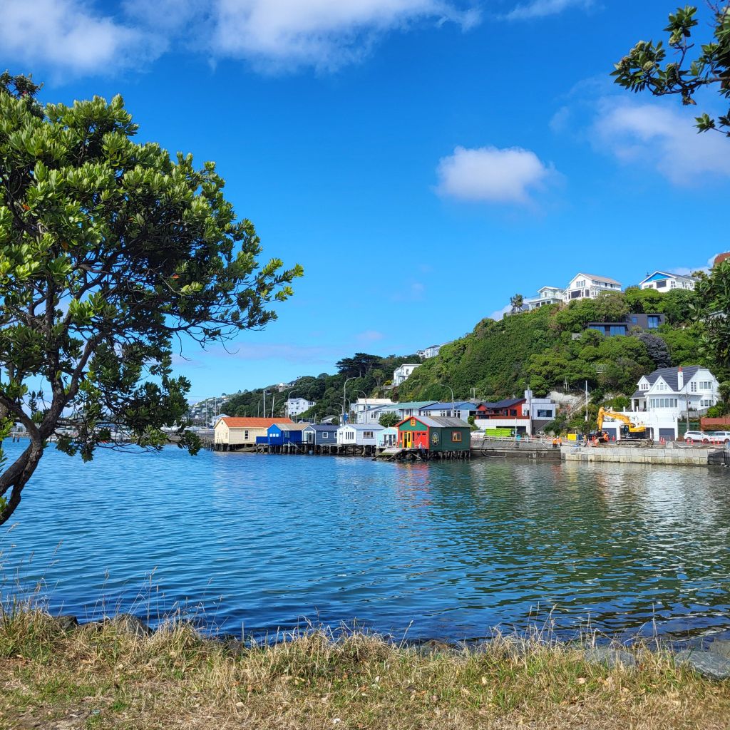 Sie hat das gesamte Telefongespräch mit Zuhause verfolgt. Sicher auf dem nur einen Bein stehend – im Wind. Wenn es tatsächlich mal nicht windig ist, dann ist die Fontäne an. 10 Minuten Fußweg vom Stadtzentrum aufgenommen.Lyall Bay – einer von vielen Stränden im Stadtgebiet von Wellington. Hinter dem Fotografen, wirklich kaum mehr als 100m entfernt, ist der Runway des Flughafens. Alles ist in Wellington recht nah beieinander.Hinter jeder Biegung befindet sich eine neue Überraschung mit teilweise „augenbetäubenden“ Ansichten.Die kleinen blauen Pinguine sieht man tagsüber leider nicht. In der Dämmerung marschieren sie dann – morgens Richtung Wasser, abends zurück ins Nest.„Moa Point“ heißt diese kleine Siedlung unterhalb des „Moa“. Sie sind anscheinend doch noch nicht ausgestorben!Am Eingang zu „Seatoun Wāhine Memorial Gardens“ befindet sich dieses Māori-Carving.Nein, es geht nicht um das Haus im Vordergrund. Schaut mal über die Baumwipfel!Diese Telefonzelle stellt keine Gesprächsverbindung mehr her. Sie ist jetzt eine Tauschbörse / Bücherei der Nachbarschaft.Und schon wieder die befrackten „Kollegen“.Scorchers Bay, im Hintergrund „Scorch’o Rama“, ein in der Gegend beliebtes Café mit kaum zu toppender Lage.Scorchers BayLyall BayEvans BayGreta Point, kurz vor Evans BayNicholson Harbour, StadtzentrumNicholson HarbourStrand „Oriental Bay“ – quasi noch Stadtmitteweniger als 5 Minuten zu Fuß vom Stadtzentrum
