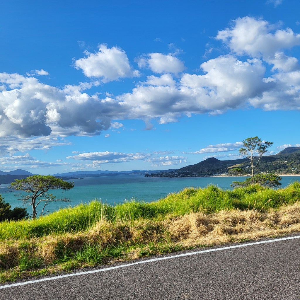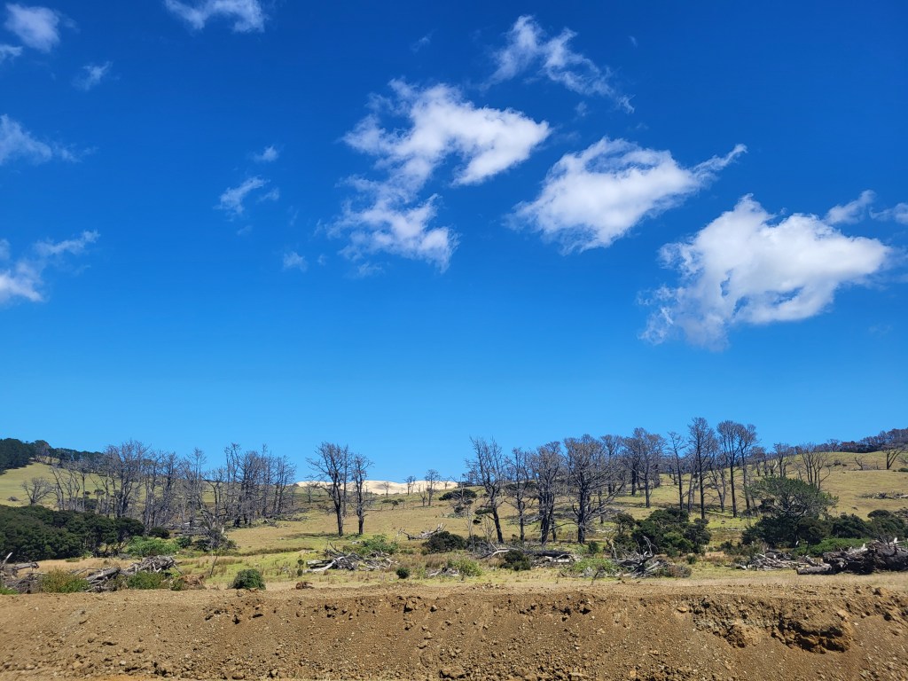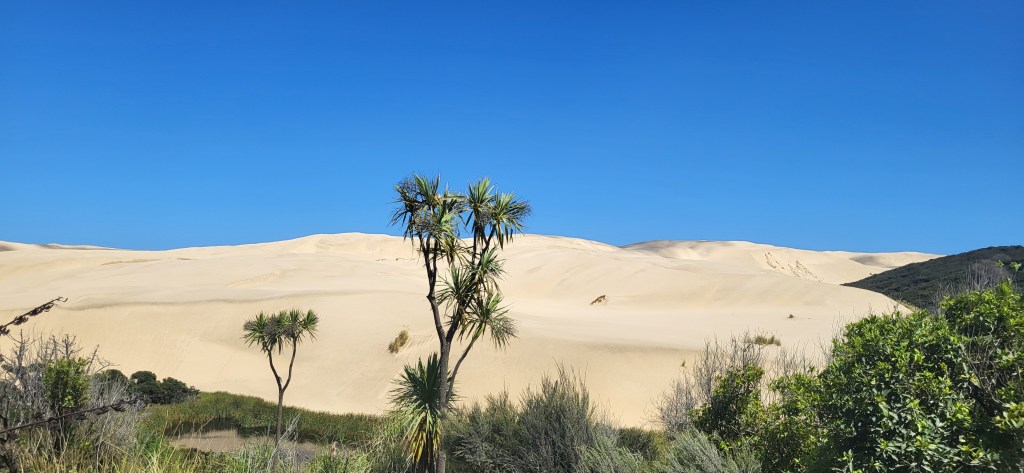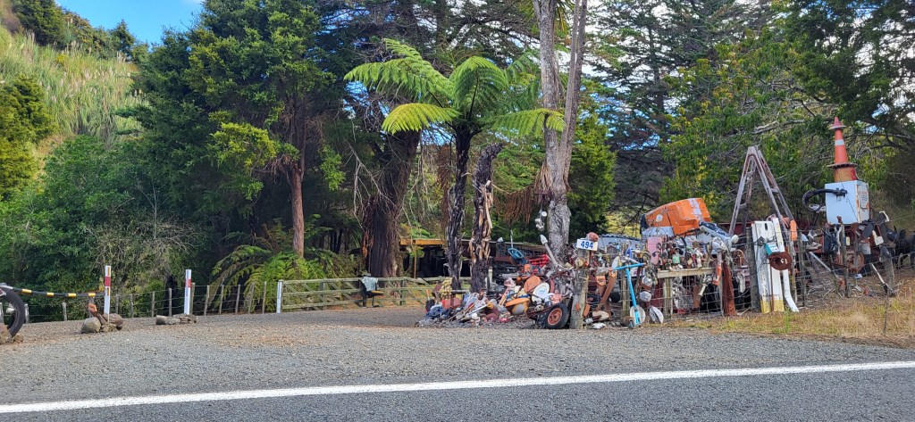 Inzwischen wurde der Zugang zum Cape rollstuhlgerecht ausgebaut, top! Vor 20 Jahren musste man noch holprige Naturpfade gehen.Ein Foto kann nur beschränkt die Schönheit widergeben, die das menschliche Auge wahrnimmt. Es ist in Wirklichkeit atemberaubend schön.Sieht fast schon aus wie in Australien.Da kann man raufgehen, aber die Giant Sand Dune war zu heiß für meine Füße.Noch einmal Australien im subtropischen nördlichen Neuseeland.Auch auf schwarzen Humor trifft man häufiger einmal. Nicht zu erkennen? Einfach heranzoomen!Das sind doch mal ordentliche Bambuspflanzen.Dieses Schild weist darauf hin, dass man hier vlrsichtig fahren soll, weil hier ein „Marae“ ist, ein Versammlungshaus der Māori.Individuelle Gestaltung der Gründstückszäune ist ebenfalls eine beliebte neuseeländische Spezialität.Die Fähre nach Rawera ist immer wieder schön.Und immer wieder ein Fotostopp.Farne, aber nicht so klein, wie wir sie kennen…Northland ist die Hauptstadt der Süßkartoffel, die hier mit dem Māoriwort „Kumara“ bezeichnet wird.Die besondere Vorliebe der Kiwis für individuelle Briefkästen hat mich schon immer begeistert.