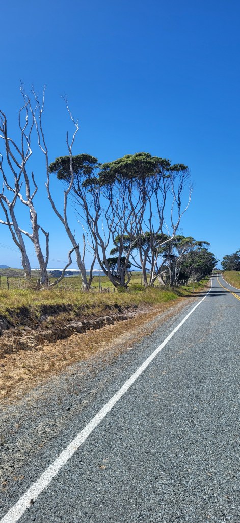 N. wollte mit seinem Fahrrad die rd 1000km von Wellington zum Cape Reinga fahren. Daraufhin schlug ich vor, dass ich ihn hinfahre und er dann den gleichen Weg fährt, aber in südliche Richtung. Also fuhren wir gestern los, in einem Rutsch durch bis Kaitaia (ca 900km) und heute dann weiter zum Cape. Dort stieg N. auf sein Rad und ich ins Auto. Ich übernachte heute in Dargaville (ca 270km vom Cape) und N. in Pukenui (ca 80km). Pukenui kannte ich von meiner früheren Arbeit, denn ich durfte alle Schulen im Land besuchen, an denen Deutsch unterrichtet wurde, und Pukenui war die nördlichste Schule Neuseelands mit Deutschunterricht.