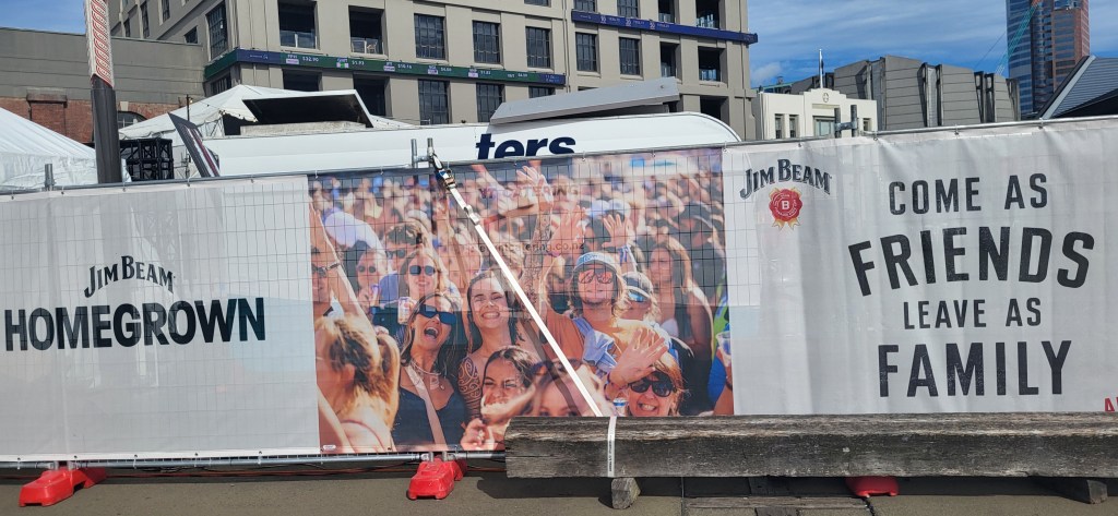 Heute wird es laut und bunt an der Waterfront, der zweite Tag des Festivals „Homegrown“ steht an. Vor dem Meeting hole ich mir schnell noch mein „Wristband“ und dann stürze ich mich auch ins Getümmel.